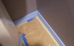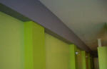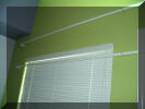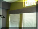 was getting really tired of stuff not being done and finished.] Although we are getting to the end, things have slowed to a crawl. Most frustrating. One item that somehow got forgotten was the valance over the windows and door. The problem is that the blinds, while functional, never look right when they are up. They are always crooked and impossible to get straight. So I wanted something to cover them. Sheri finally decided that a fabric covered valance would work. Unfortunately, it got put to the end and was going to take way too long to get accomplished so she mounted some rods and I made a fabric valance. Unfortunately, I think she misjudged the position and maybe the height. When the blinds are up, I can still see them. But, the things took me all day to make and get up there and I am way too hot and tired to even think about fixing the problem now. |