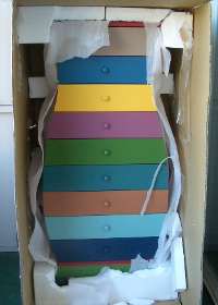 Excellent deal, this cat chest. Also today, Dinah, the painter were here planning her next 2.5 weeks. She starts on Monday with the ceilings. I had to move my bed to the middle of the bedroom which is weird. And the couch will need to be moved before Monday. But the biggest pain in the ass is that she doesn't want the cats around. I did not think she handled it very well and it kind of pissed me off a little. But, hopefully, she'll be a fine painter and there won't be any problems. Meanwhile Jake and Betty will need to spend their days out on the terrace. I figure this is better than the bathroom which is the only other choice. I wish I could get the couch through the door. I'd move that out there for them. But it's too wide to go through. They will be fine. The painter is not going to be happy with no fresh air but hey, if she wants fresh air, she can let the cats back inside! The fun chest and the night stand showed up today. Both Sheri and I missed the detail on the website about the nightstand... Needs Assembly! As it turns out, it's really better. I just put all the parts back onto the flat box and out on the terrace where it will be safe until all the painting is done and the carpet is in. It is a nice piece and I have no qualms about ordering more from these people.