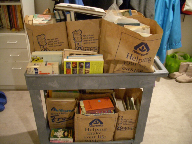 Sheri came over today and worked magic. This is what I left her. My only direction was to get it all onto the shelves.