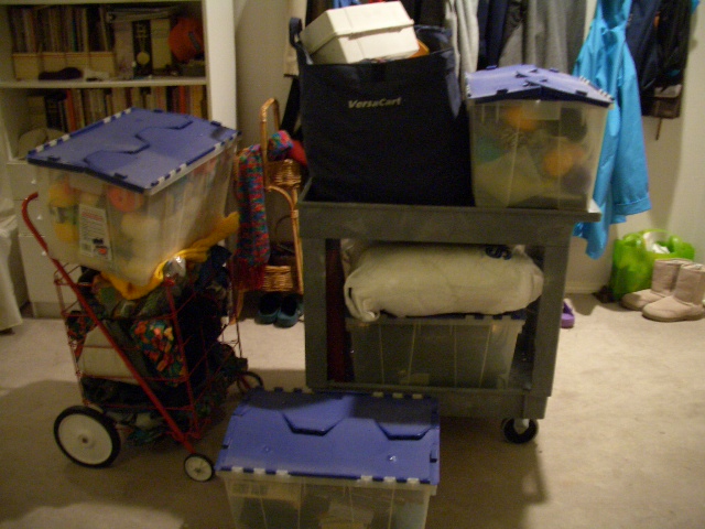 Oh and the closet. I now have shelves galore and more on the way. I finally was able yesterday to start getting some of this stuff off the floor and put away!