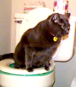 changed to the roasting pan. Here's Jake using the toilet with the sitz