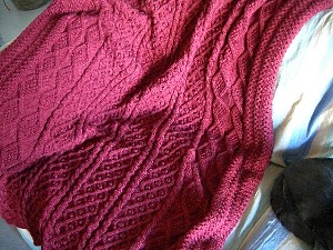 Afghans) - Stitches: 304 Needles: #6 Yarn: Caron's Simply Soft - Autumn Red 2721, 18 skeins (@3,000 yds /54 oz.) Dimensions: 50" wide x 61" long Knitted: 9/11/04 - 10/30/04 Notes: The color is really more burgundy than this photo shows.