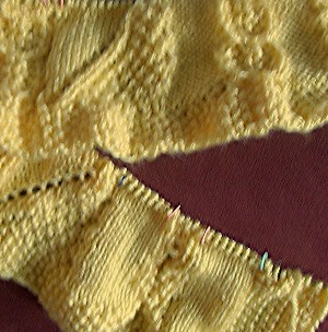 February 9, 2004 And a new blanket begins. I am trying a new yarn - with a new pattern. Size 6 needles - the pattern is from Herrschners and called Simply Elegant. I've added in a pattern repeat to make it wider since the pattern calls for bigger yarn and bigger needles and I want the blanket bigger! The yarn is Red Heart TLC Ultra Soft. |