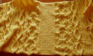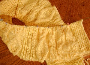 March 20, 2004 This is absolutely one of my favorite patterns ever. It just does not get boring. It's now 55" long and I could easily just keep going forever. Proportion says that I really need to stop in about 3 inches. And so I will but I'll be doing it again, for sure and soon. |