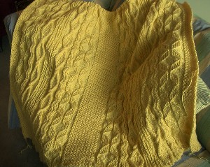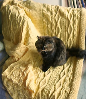 February 15, 2004 This might not look like a different blanket than the picture below but it is. I got about 5 inches into the other one and decided that I didn't like the pattern so I ripped it out and started all over again - same yarn, same needle size, different pattern. I like this one much better. And the color in this picture is truer to the real color. |