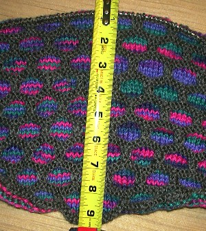 December 1, 2003 This is coming along pretty nicely. It's right at 58" wide so I think I finally have one big enough to suit me. I don't have enough yarn to finish it but my favorite yarn shop is having a 'free shipping' special so I've ordered enough to finish it off. |