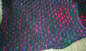 November 29, 2003 This will be a new afghan. It's the same pattern as the honeycomb one I did before. This time I'm using a bigger yarn (same size needles) and 318 stitches. It feels like it's going to be too big but I'm tired of making them too small! |
