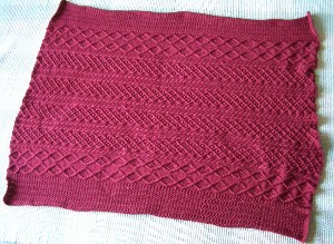 Afghans) - Stitches: 304 Needles: #6 Yarn: Caron's Simply Soft - Autumn Red 2721, 18 skeins (@3,000 yds /54 oz.) Dimensions: 50" wide x 61" long Knitted: 9/11/04 - 10/30/04 Notes: The color is really more burgundy than this photo shows.